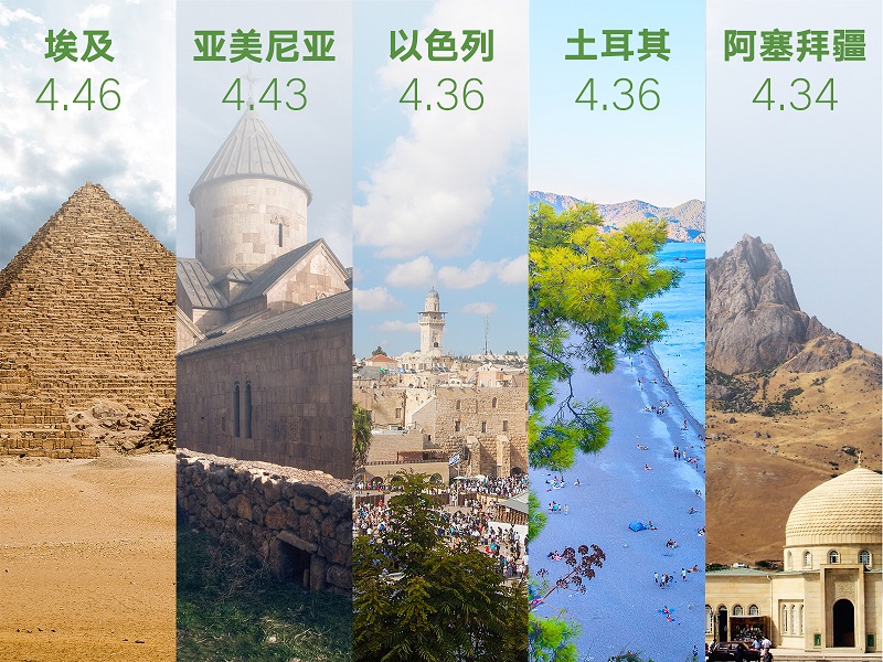 TripAdvisor貓途鷹近日發布了有關“絲綢之路”旅行的趨勢分析。結果顯示,在“絲綢之路”問卷涵蓋的33個國家中,2016年訪問量年增長率最高的10個國家分別是:格魯吉亞,阿塞拜疆,烏克蘭,韓國,亞美尼亞,日本,俄羅斯,吉爾吉斯斯坦,印度尼西亞,伊朗,大部分位于中東、東歐及西亞地區。全球旅行者評分(總分5分)最高的5個國家也都位于這一區域,分別是:埃及 4.46;亞美尼亞 4.43;以色列 4.36;土耳其 4.36;阿塞拜疆 4.34。