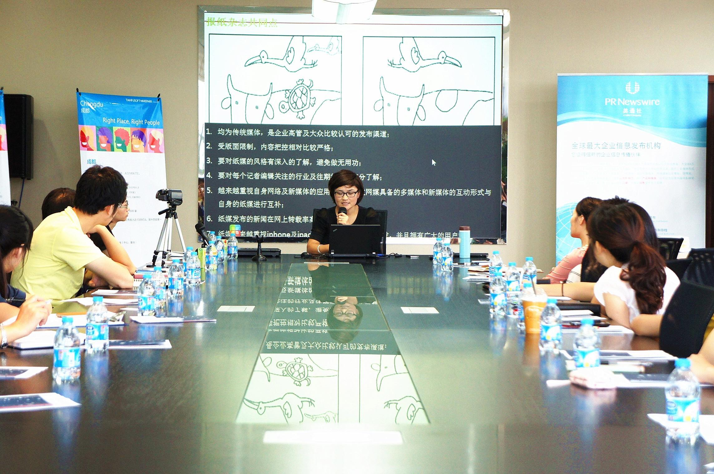 成都2012年7月16日電 /美通社亞洲/ -- 7月12日,由美通社攜手天府軟件園共同打造的“新傳播茶會”在成都天府軟件園C區(qū)成功舉辦。此次以“企業(yè)傳播與推廣”為主題的茶會吸引了近五十家企業(yè)的代表參加,他們包括吉勝科技、安科思軟件、美幻科技、華邁通信、中智、飛魚星科技、木瓜移動等。演講嘉賓美通社媒體關(guān)系總監(jiān)楊麗娜、IT168和泡泡網(wǎng)成都站負(fù)責(zé)人劉斌分別就企業(yè)傳播技巧、危機(jī)公關(guān)、互聯(lián)網(wǎng)推廣與營銷等話題向與會嘉賓進(jìn)行了分享。
