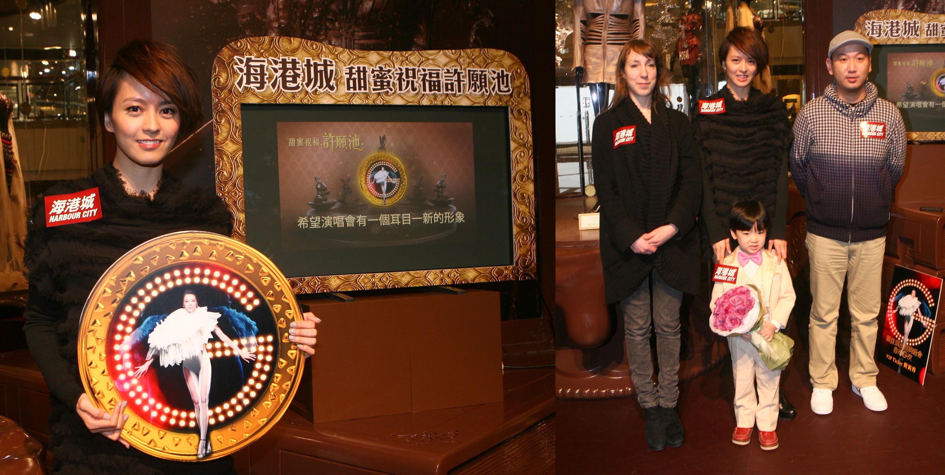 為隆重其事,海港城特別于2011年2月14日(星期一) 在海港城港威商場大堂I舉行“海港城‘甜蜜祝福許愿池’揭幕活動”,特別請來 梁詠琪(Gigi) 出席為海港城“甜蜜祝福許愿池”揭幕,成為首位許愿嘉賓,并暢談情人節趣事、兔年愿望、演唱會主題內容及籌備情況等。另外,遠道而來的荷蘭星級時裝設計師Iris van Herpen,又會與梁詠琪互相交流衣著心得,并為她即將舉行的演唱會給予專業服裝意見。而梁詠琪為表示感謝,亦會送贈特別的VIP演唱會門票予Iris。