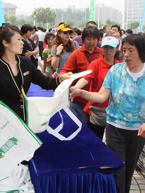 自“限塑令”執行以來,沃爾瑪全國門店數量增加了兩倍多,但塑料袋使用總量卻僅約為原來的十分之一,取得了顯著的效果,為環境保護做出了積極的貢獻。活動現場,沃爾瑪派發了印有“減塑”相關主題宣傳資料的全降解環保袋,受到顧客的歡迎。