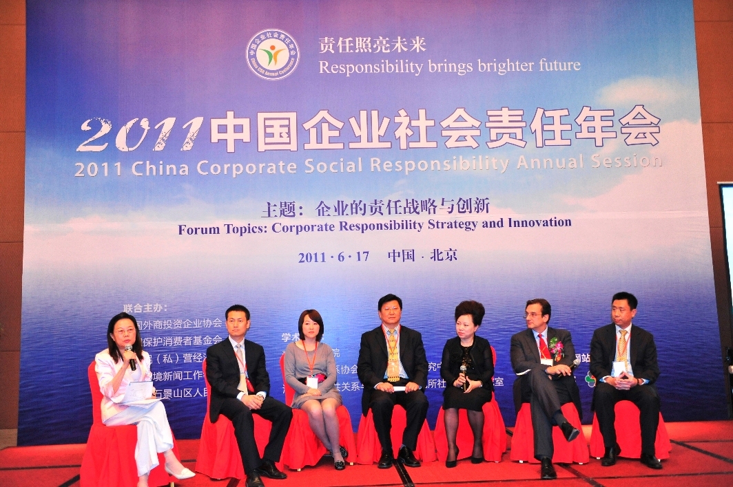“第三屆企業社會責任年會”由中國外商投資企業協會、中國保護消費者基金會、中國民(私)營經濟研究會、中國環境新聞工作者協會和北京市石景山區人民政府聯合主辦,2011年6月17日在北京舉行。本次年會主題為“企業的責任戰略與創新”。當天企業高管、政府官員、專家、國際組織及 NGO、中外主流媒體記者等各界人士匯聚一堂。為提醒全世界的企業都來重視社會責任、更好的履行社會責任,并號召更多企業參與其中,經與會企業提議,年會組委會及與會的80家中外知名大公司還倡議從明年起,將每年的6月16日確立為世界“企業社會責任日”。
