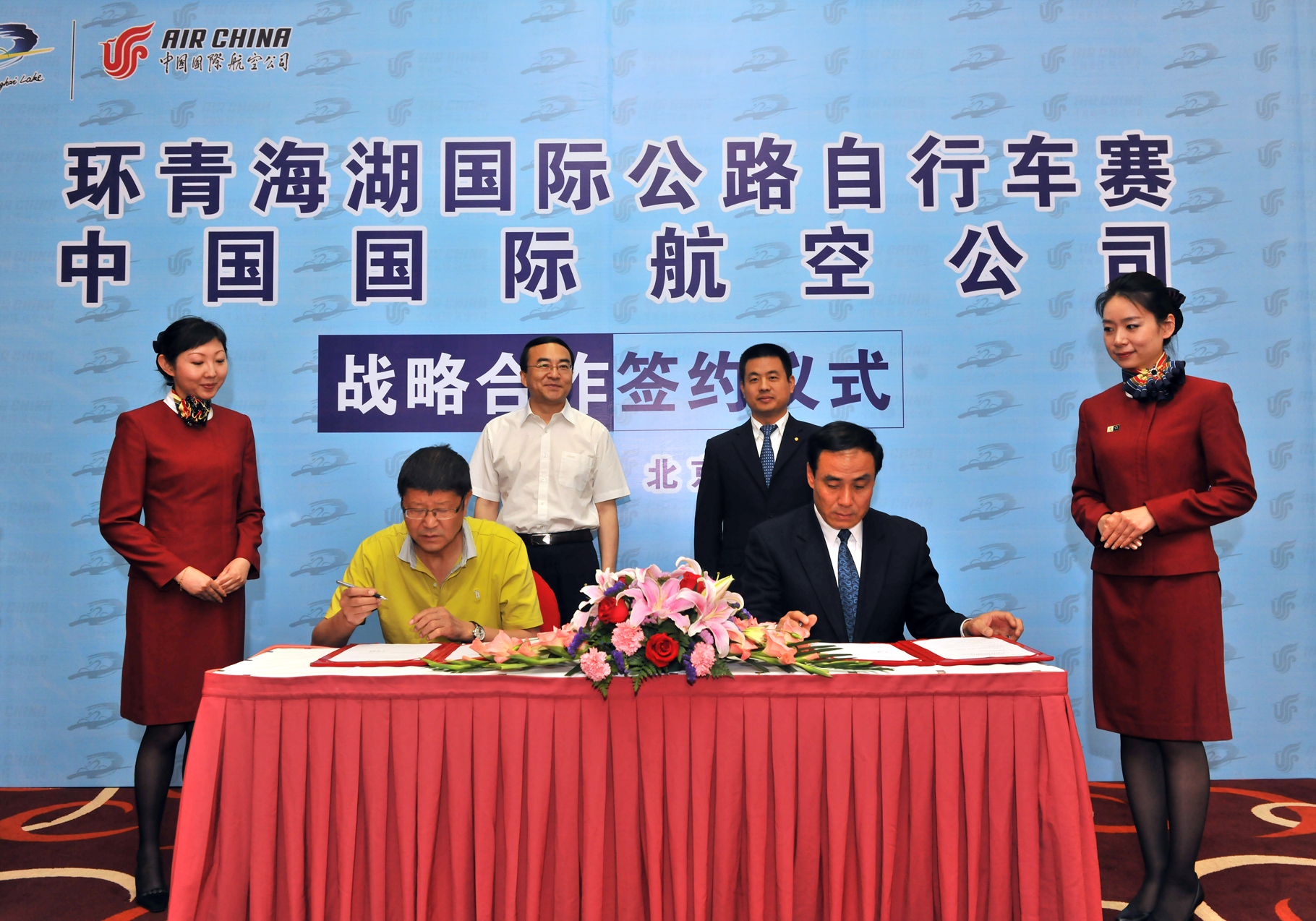 北京2011年6月3日電 /美通社亞洲/ -- 2011年6月3日,中國國際航空股份有限公司(以下簡稱國航)與第十屆環青海湖國際自行車賽組委會簽訂贊助合作協議,正式成為第十屆環湖賽唯一指定航空承運人。國航作為唯一連續十年贊助該項賽事的贊助商,每年為來自五大洲的20多支隊伍和超過幾百人次的工作人員與運動員提供了旅行贊助優惠和航空運輸服務。國航本著支持西部建設和回報社會的企業責任感,用自己的積極參與和實際行動將名字寫入了環湖賽發展的歷史與未來。