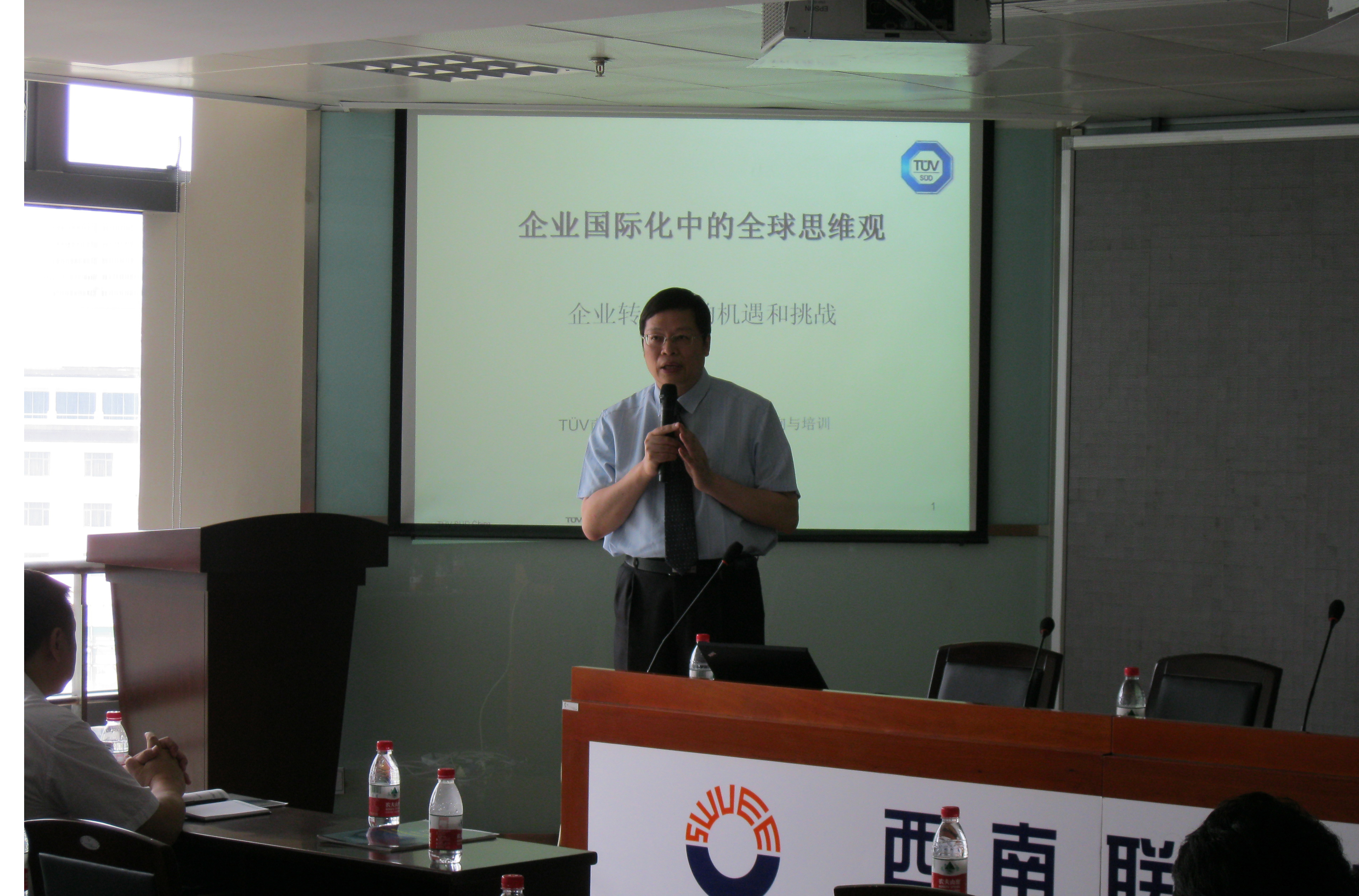 近年來全球化帶來的沖擊已遠遠超越了人們的想象。在企業迅速發展的進程中,企業管理團隊是否具備國際化的能力是企業戰略實現的重要一環。為幫助四川企業提升高層管理能力,適應全球化的挑戰。四川省機械行業委員會攜手西南聯合產權交易所,邀請全球較大獨立第三方認證機構之一的 TUV 南德意志集團培訓與咨詢部總監兼首席培訓師洪楓博士赴蓉為其合作伙伴、會員企業的高級管理人員舉辦《公司國際化的機遇和挑戰:管理的全球觀》專題研討會。