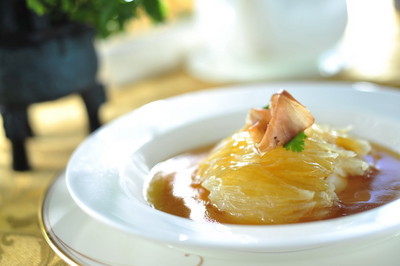 君綽軒國(guó)慶煙花匯演套餐 A -- 金陵片皮乳豬、菜膽肘子片燉鮑翅、蠔皇南非六頭鮑扣遼參、頭抽星斑扒、蟹黃竹笙露筍卷、蒜香脆皮雞、鮮蝦荷葉飯、生磨核桃露湯丸、水果拼盤(pán)。每位港幣1,188元。
