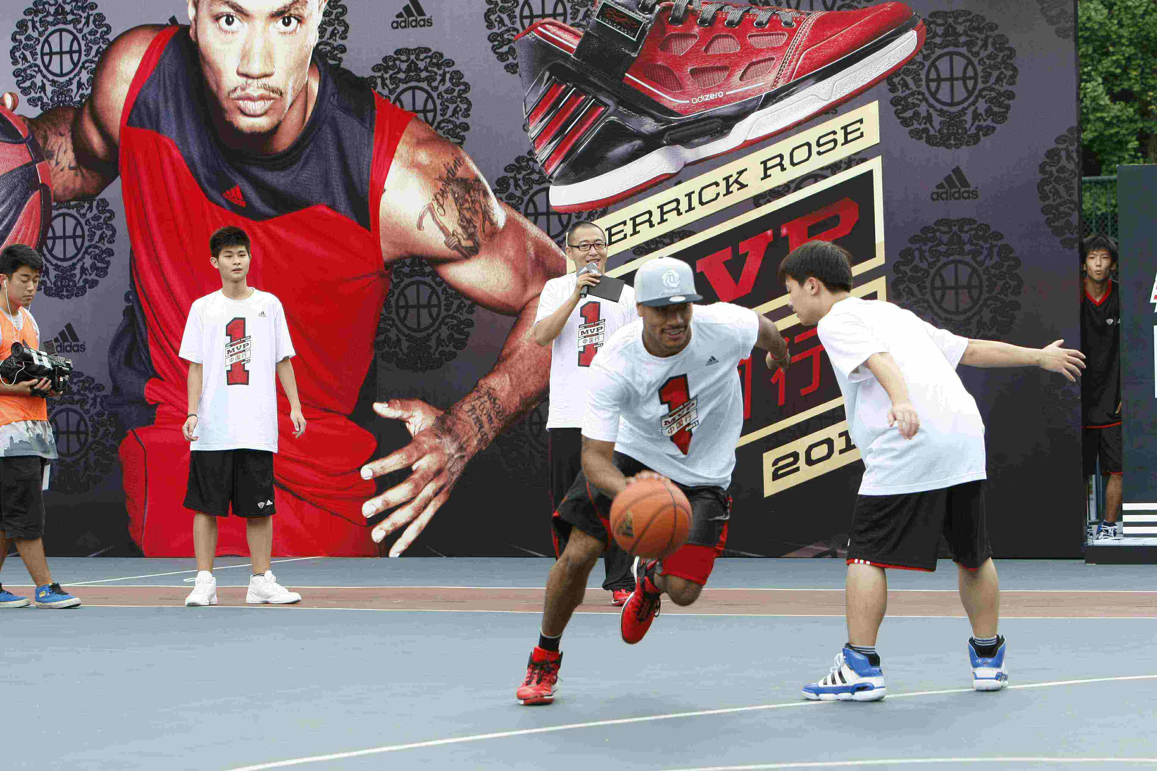 上海2011年8月23日電 /美通社亞洲/ -- 今天,世界領(lǐng)先的運動品牌阿迪達斯旗下的籃球巨星 -- NBA 史上最年輕的 MVP -- 德里克·羅斯空降申城,在上海南京西路新世界城和徐家匯籃球公園內(nèi)與中國籃球兄弟全傾全力上演了一場輕無敵的速度 PK 大戰(zhàn)。在初訪上海兩年之后,羅斯再度造訪申城。現(xiàn)在的他,已經(jīng)從當年的新秀一躍成為頂尖的 MVP 球員。他的成功不單只因其天賦異稟及對籃球的熱愛,更是源自他在賽場上忘我的投入,賽場下的刻苦訓練,以及對球迷的尊重和熱愛。在上海的活動現(xiàn)場,羅斯不僅與上海球迷分享了他全傾全力的籃球故事,同時為每位購買了最新限量版球鞋 -- 羅斯二代的球迷簽名,在籃球場上更是大展身手,為球迷進行提供 MVP 現(xiàn)場特訓。