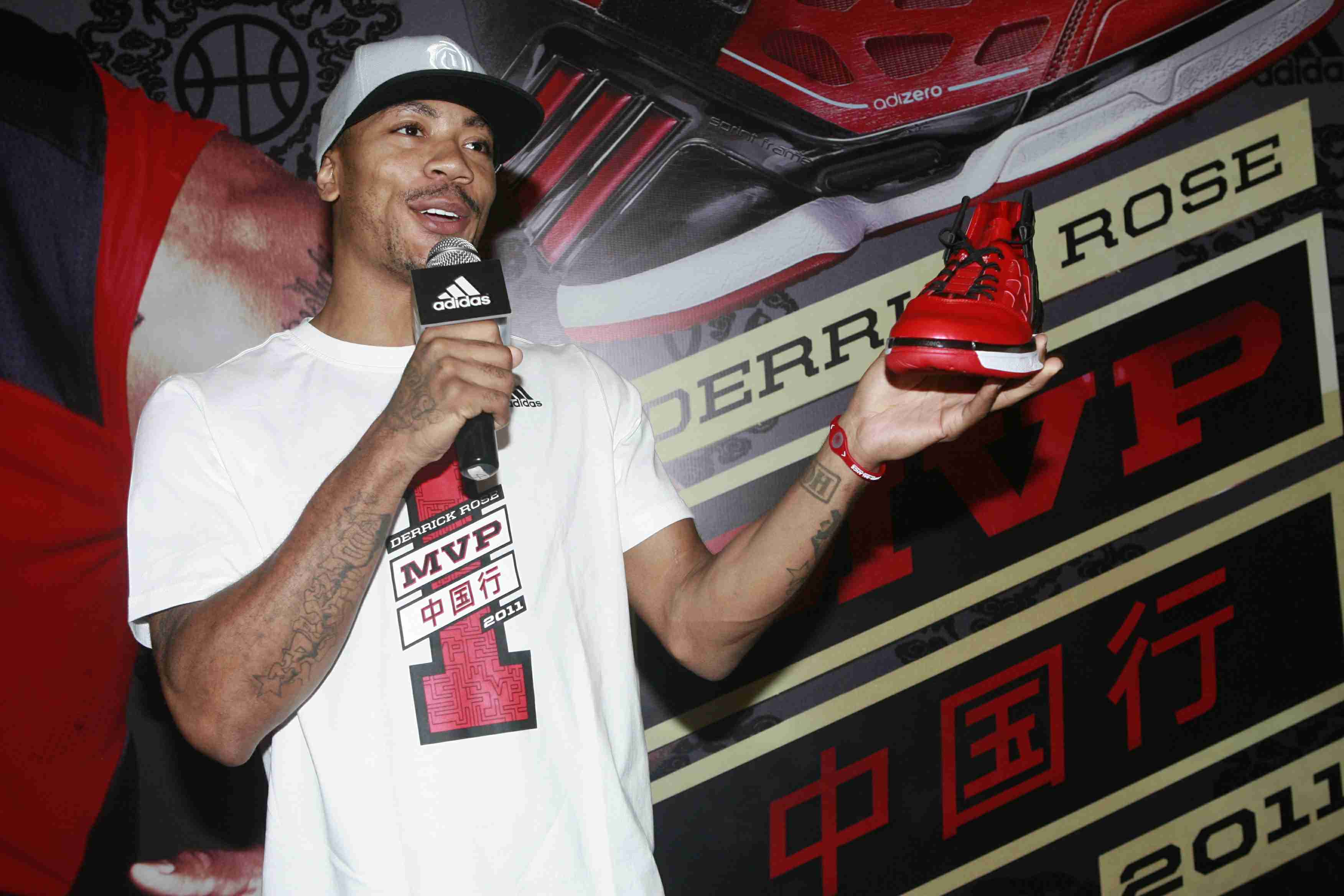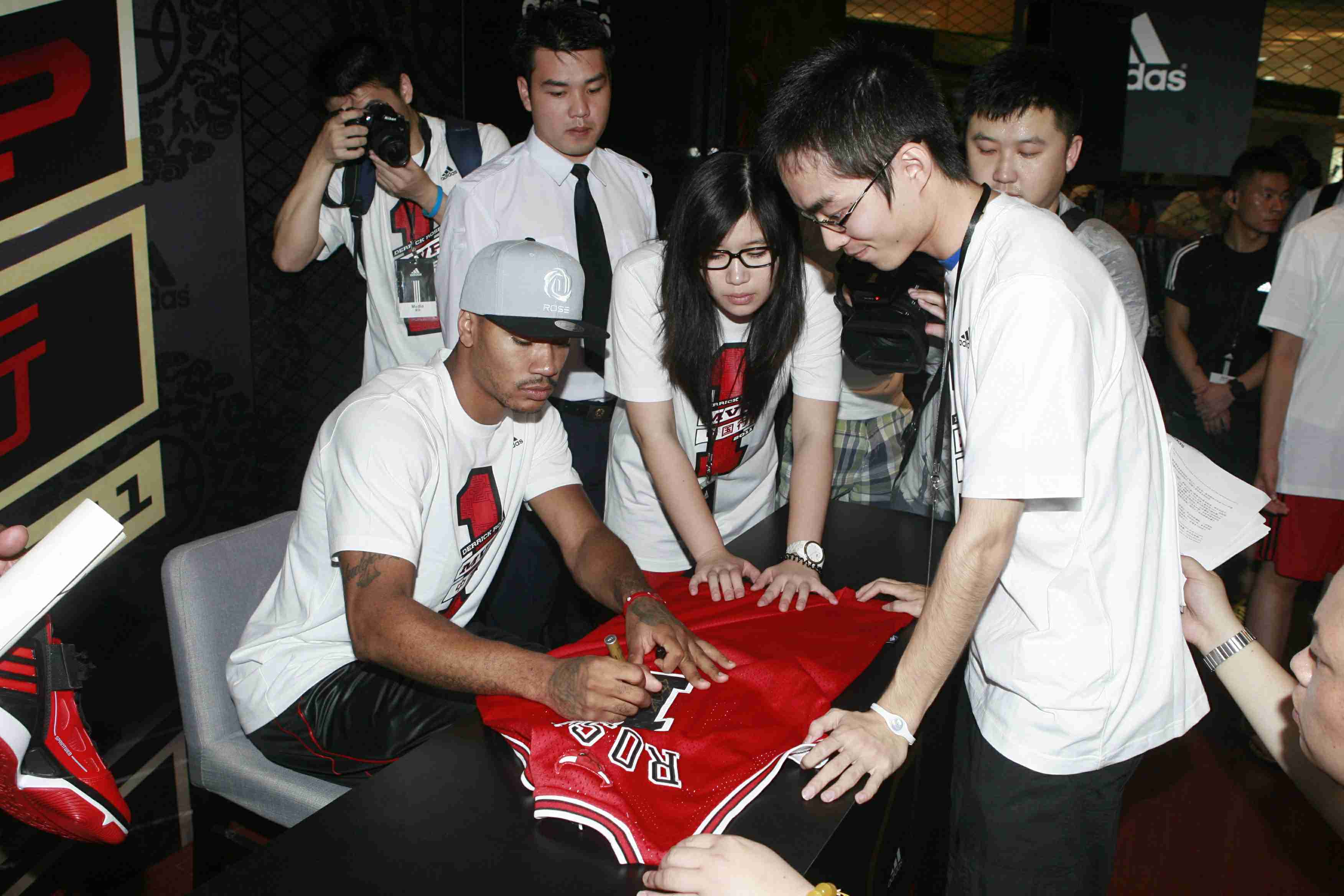此次中國行期間,羅斯還向球迷們推薦阿迪達斯為其研發(fā)的新一代致勝利器 -- 羅斯二代戰(zhàn)靴 adizero Rose 2.0。限量版的中國行羅斯二代僅限300雙,為紅色配色,代表芝加哥城市色彩,加配有籃、黑兩種鞋帶。而十月份在國內(nèi)正式上市的羅斯二代將有白色、灰色以及黑色三種不同配色,羅斯在現(xiàn)場展示的全黑配色版本就是其中一款。