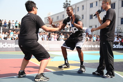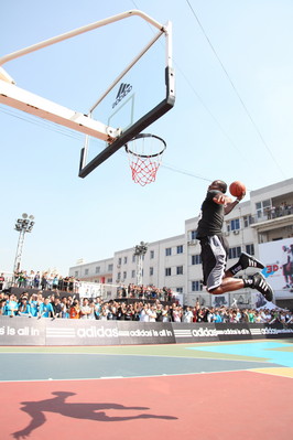 北京2011年9月2日電 /美通社亞洲/ -- 今日,世界領先的運動品牌阿迪達斯旗下的籃球巨星——三屆NBA 年度防守球員德懷特·霍華德震撼降臨北京地壇籃球公園,開始為期一周的“霍華德3D中國行”活動。時隔一年,再度造訪北京的魔獸霍華德,難掩心中的喜悅與興奮。在向球迷們展示其夏日訓練成果的同時,仍不失其幽默的個性,頻繁上演搞笑的說唱戲碼與逗趣的中國話問候。拋開了魔獸搞笑的特性,在訓練場與球迷互動中,霍華德不但為京城球迷帶來了一堂如何變強的訓練課程,同時在球場上與球迷進行互動PK,讓在場的球迷領略了其全傾全力的強無雙精神——忘我的投入訓練,突破自我,超越自我。與此同時,霍華德發布并介紹了個人專屬Logo及中國行戰靴adipower Howard,此款黑白配色中國行限量款在全國僅限量發售500雙,正式鞋款將在今年十一月發售。