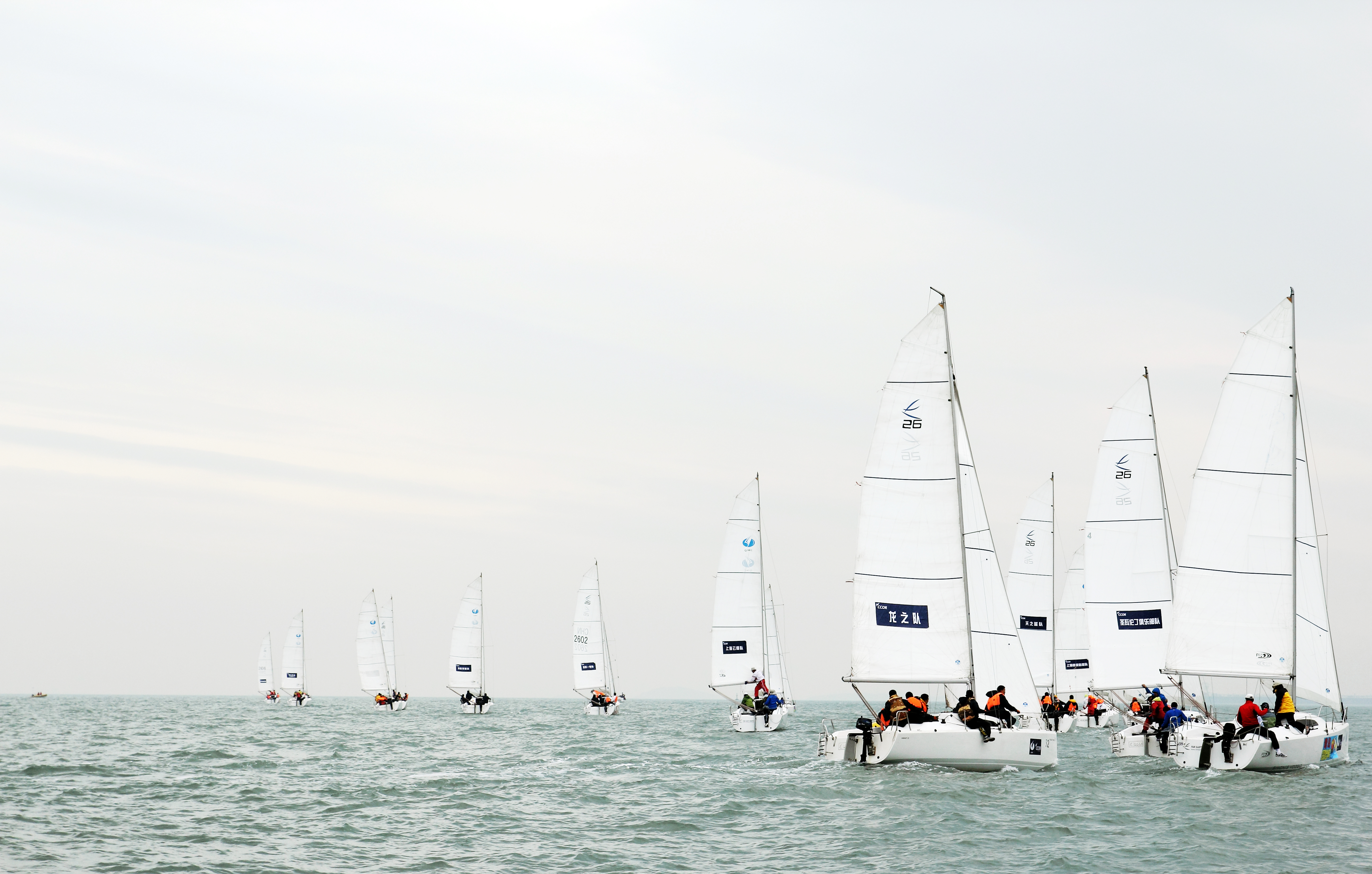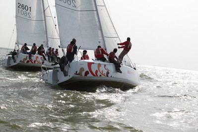 青島中國。2011年5月19-22日。城市俱樂部公開賽,奧林匹克帆船中心。10條統一組別 琺伊26帆船比賽。琺伊26是一條統一設計的龍骨帆船,8米長,可升降龍骨。由上海琺伊玻璃鋼船艇有限公司制造,SIMONIS VOODG 設計公司設計。更多信息,請登錄www.fareastboats.com