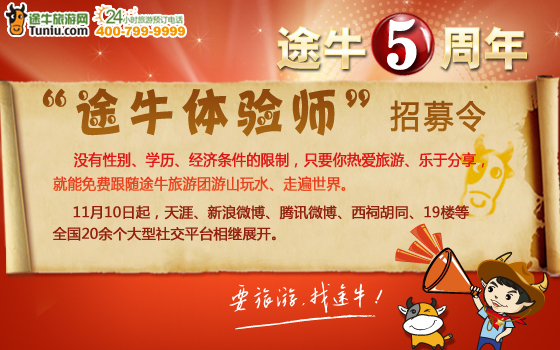 途牛旅游網(wǎng)5周年系列活動(dòng)“途牛體驗(yàn)師”P(pán)K賽招募令 讓美夢(mèng)成真