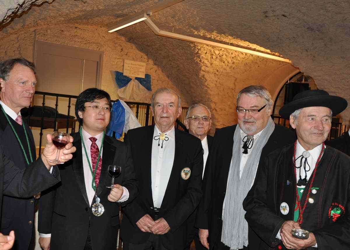 也買酒 CEO 劉君,目前正攜也買酒資深酒友在法國(guó)薄若萊參加開(kāi)瓶夜派對(duì)。薄若萊羅納-阿爾卑斯大區(qū)議會(huì)議員兼大區(qū)政府農(nóng)業(yè)部副主席 Philippe Lacondemine 及薄若萊行業(yè)協(xié)會(huì)于開(kāi)瓶夜法國(guó)當(dāng)?shù)赝砩?點(diǎn),授予劉君 Compagnons du Beaujolais(薄若來(lái)會(huì)士)的封號(hào)。該儀式自1947年開(kāi)始,至今共有2000人受勛,為了表彰在全世界推廣薄若萊葡萄酒及文化所做出的貢獻(xiàn)。
