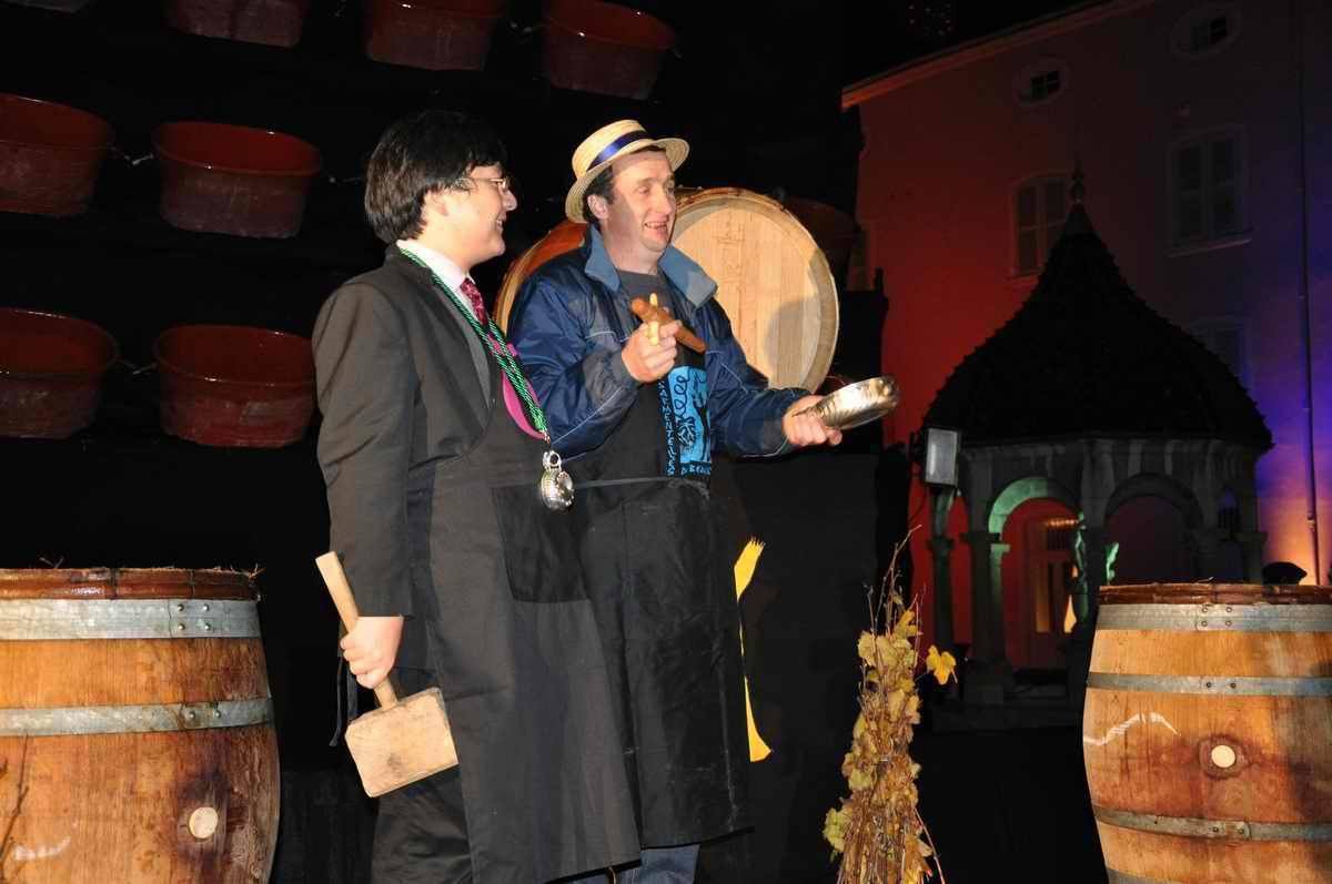 而當(dāng)零點(diǎn)鐘聲敲響的時(shí)刻,法國(guó)薄若萊2011的新酒的第一個(gè)酒桶亦是由劉君以傳統(tǒng)的儀式鑿開(kāi),成為了全法國(guó)第一位喝到薄若萊新酒的人,更是第一位在薄若萊市政廳門(mén)口敲開(kāi)薄若萊新酒酒桶的中國(guó)人。顯示了法國(guó)官方對(duì)也買酒在推廣薄若萊新酒文化方面的認(rèn)可,以表彰也買酒幫助薄若萊新酒拓展中國(guó)市場(chǎng)的卓越貢獻(xiàn)。