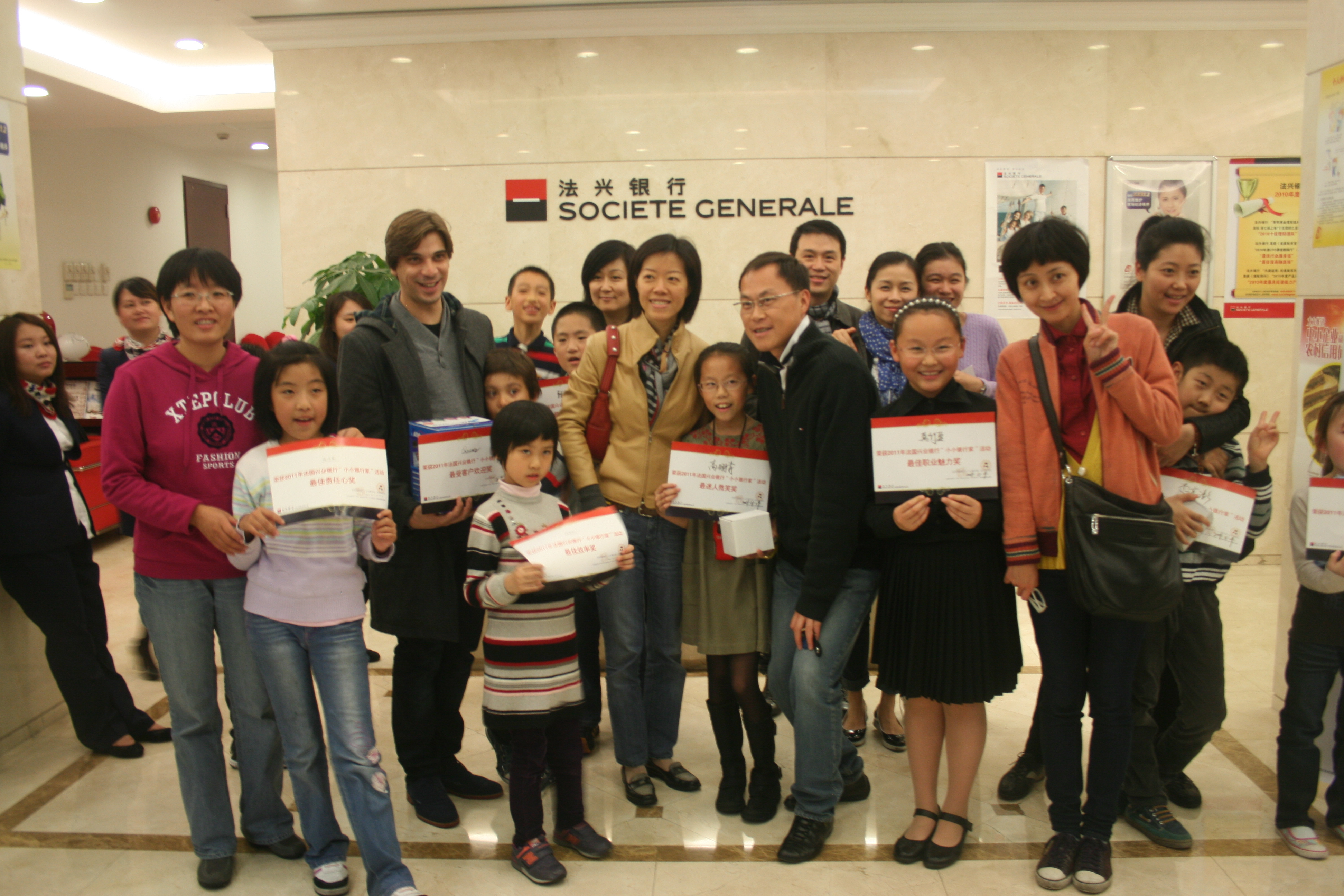 北京2011年11月29日電 /美通社亞洲/ -- 近日,法興銀行推出“小小銀行家”活動,小朋友們經(jīng)過全國范圍內(nèi)嚴格的筆試面試,精心挑選出來優(yōu)秀的候選人,隨后根據(jù)報名意向,候選的小朋友們被聘為行長、副行長、客戶經(jīng)理等,由各個職位對應(yīng)的法興銀行工作人員一對一進行輔導(dǎo)和職業(yè)體驗。活動結(jié)束后,根據(jù)小朋友當(dāng)天的表現(xiàn),會被授予“較佳領(lǐng)導(dǎo)風(fēng)范獎”、“較佳敬業(yè)獎”、“較佳儀表獎”等,以激勵孩子們未來成為真正的銀行家而努力。
