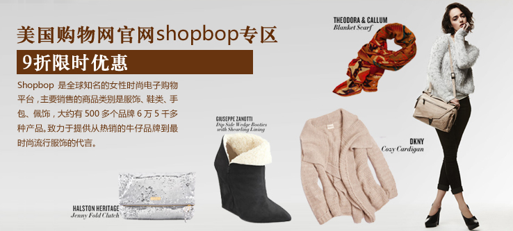 shopbop 是全球知名的女性時尚電子購物平臺,主要銷售的商品類別是服飾、鞋類、手包、佩飾,大約有6萬5千多種產品,現已發展成為全球領先的女性時尚服裝零售商之一。作為世界知名的時尚資源,承載超過500多種不同的設計師品牌,一直處于時尚前沿并提供個性化購物體驗。其在國內風靡已久,大S婚禮中奢華的伴娘禮服幾乎都是來自該網站,而范冰冰親筆簽名的限量版 FNO T 恤自9月1日起就在 shopbop 獨家發售。shopbop 曾被《Daily Candy》譽為“時尚編輯”,并被《華爾街日報》譽為擁有“出色的客戶服務”。