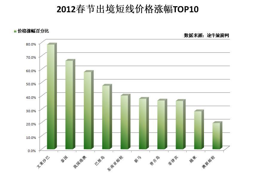 2012春節(jié)出境長(zhǎng)線價(jià)格漲幅 TOP 10