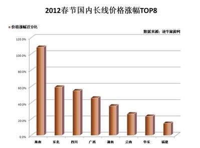 2012春節(jié)國(guó)內(nèi)長(zhǎng)線價(jià)格漲幅 TOP 8
