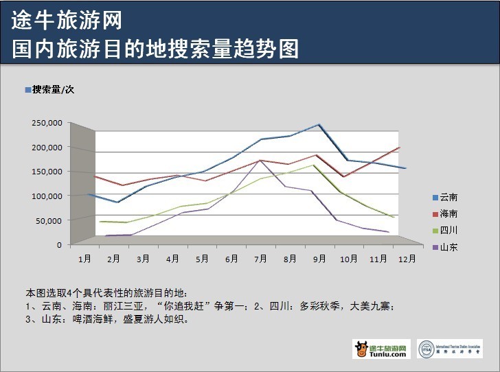 途牛旅游網國內旅游目的地搜索量趨勢圖