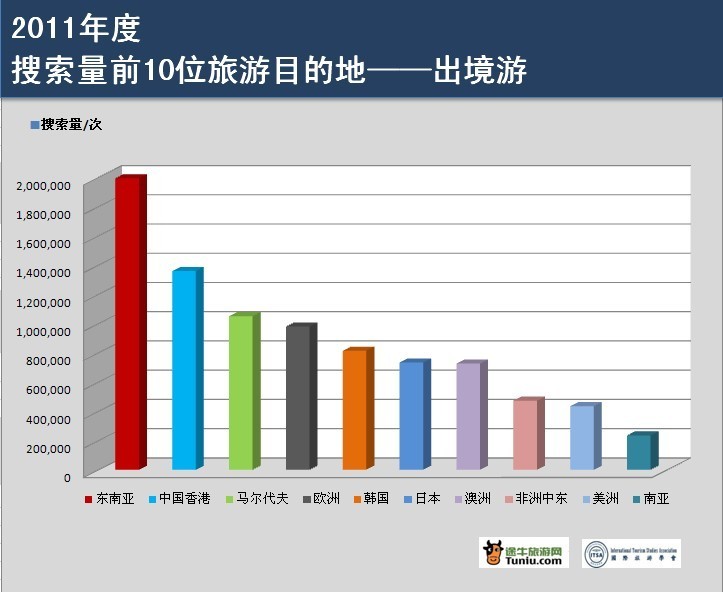 2011年度搜索量前10位旅游目的地 -- 出境游