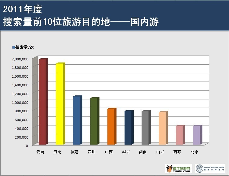 2011年度搜索量前10位旅游目的地 -- 國內游