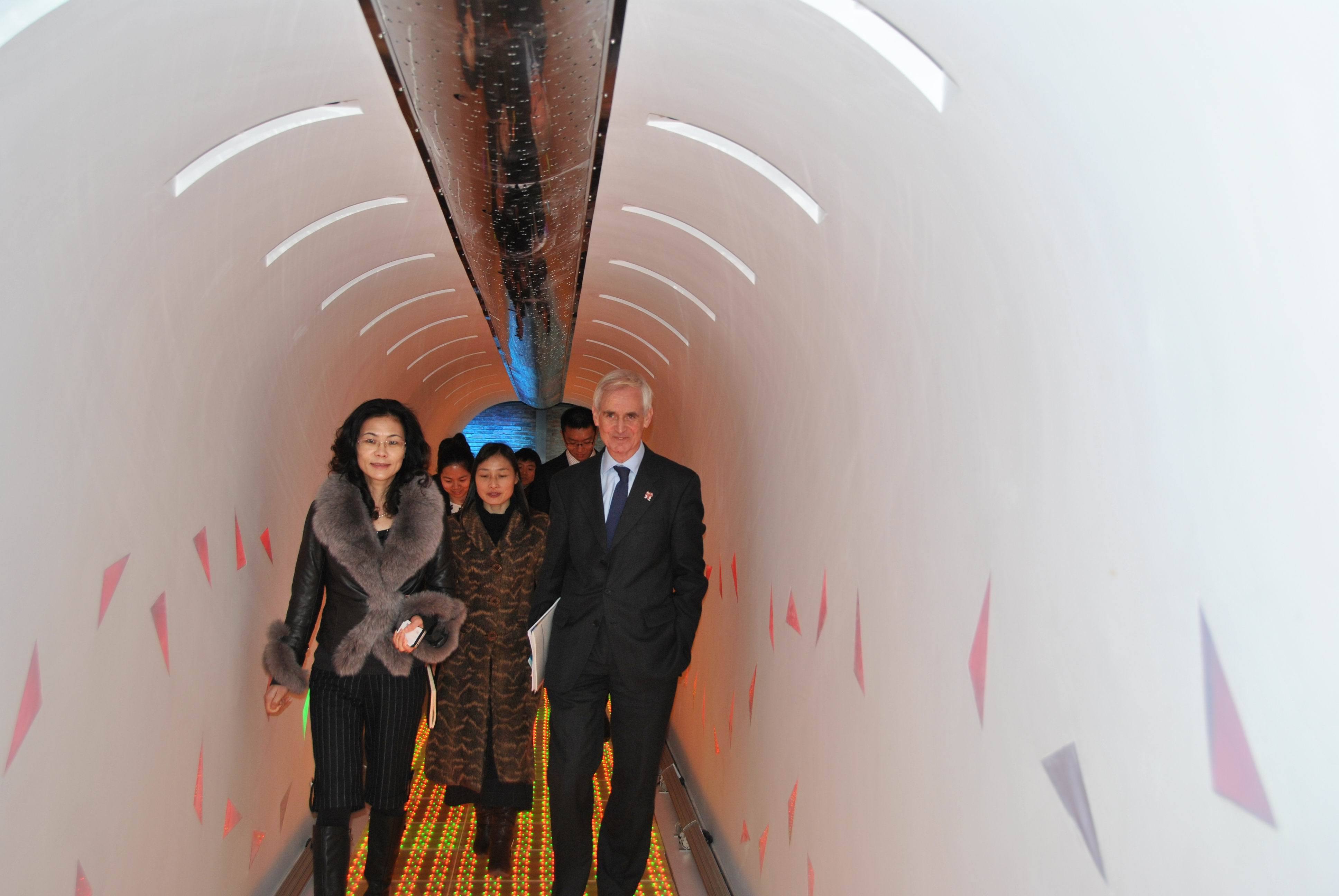 英國駐廣州總領事摩根在感受雷士照明光環境體驗館時光隧道