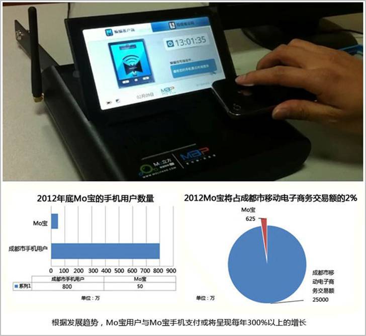 “蝙蝠”基于超聲波無線通訊技術,對商戶來講,店內只需增加一臺可識別“蝙蝠”超聲波的終端設備,即可使用;對用戶來講,安裝和使用不需要更改手機的任何硬件,只要能發聲的手機就能使用,也可輸入特定的6位密碼進行支付,這種特性使得推廣更加容易。同時,“蝙蝠”無縫嵌入Mo寶網絡旗下的O2O移動電商平臺“Mo立方”,兩者結合,共同為商戶將線上客戶轉化為線下資源。目前成都已有兩百余家商戶可使用蝙蝠支付,預計到年底,可突破千家。