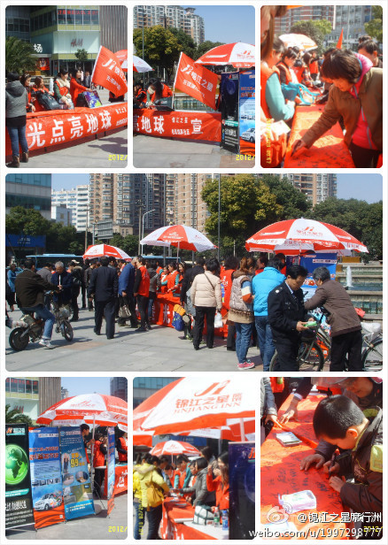 實(shí)際上,錦江之星從2009年起就已經(jīng)開始參與“地球一小時(shí)”熄燈活動(dòng),這已經(jīng)是第四年了。錦江之星一直倡導(dǎo)環(huán)保和綠色,多次舉行宣傳環(huán)保的活動(dòng),諸如“您環(huán)保,就省錢”(客人放棄使用客房衛(wèi)浴6小件,就可以省10元)等活動(dòng)。