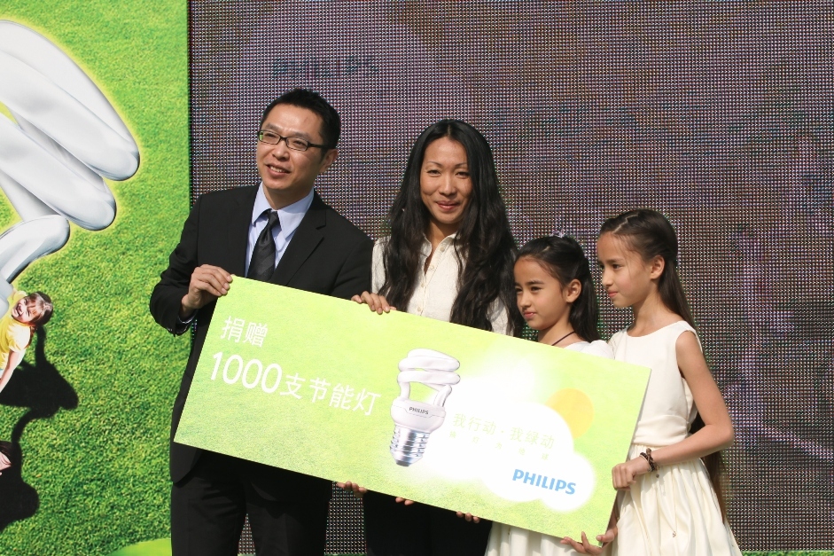 飛利浦照明中國高級市場總監(jiān)余泳濤先生現(xiàn)場向雨林精靈姐妹捐贈一千盞節(jié)能燈