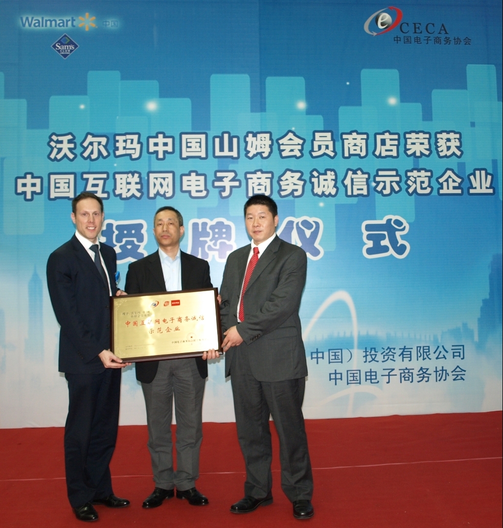 深圳2012年4月18日電 /美通社亞洲/ -- 今日,沃爾瑪中國山姆會員商店(www.samsclub.cn)被中國電子商務協會授予“中國互聯網電子商務誠信示范企業”榮譽。在沃爾瑪全球年銷售額較高的深圳山姆會員商店舉行的儀式上,沃爾瑪中國副總裁兼首席信息官王曉源從中國電子商務協會萬東輝副秘書長手中接受榮譽牌匾。