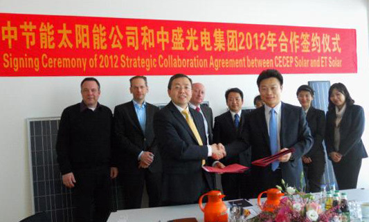 中國(guó)南京2012年4月26日電 /美通社亞洲/ -- 全球領(lǐng)先的一站式太陽(yáng)能電力解決方案的提供商 -- 中盛光電集團(tuán) ET Solar Group (下稱“ET”、“中盛光電”或“中盛”)日前與中節(jié)能太陽(yáng)能科技有限公司(下稱“中節(jié)能太陽(yáng)能”)聯(lián)合開發(fā)建設(shè)海外光伏電站。