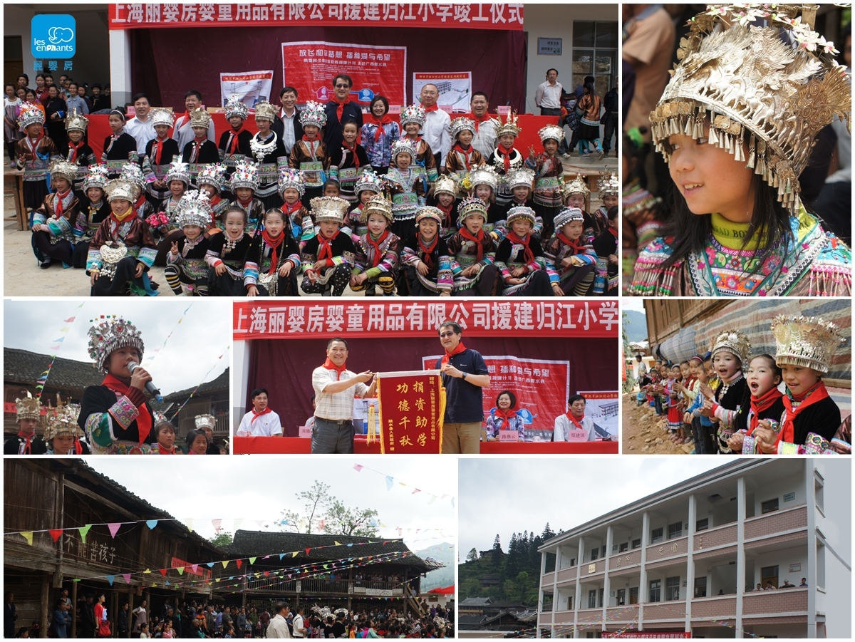 上海2012年5月2日電 /美通社亞洲/ -- 2012年4月23日,在中國西南廣西省融水縣歸江村小學(xué),上海麗嬰房嬰童用品有限公司、中國扶貧基金會、廣西省扶貧辦、融水縣當(dāng)?shù)卣跋嚓P(guān)部門領(lǐng)導(dǎo)等,共同出席新落成的歸江村小學(xué)教學(xué)樓竣工儀式。