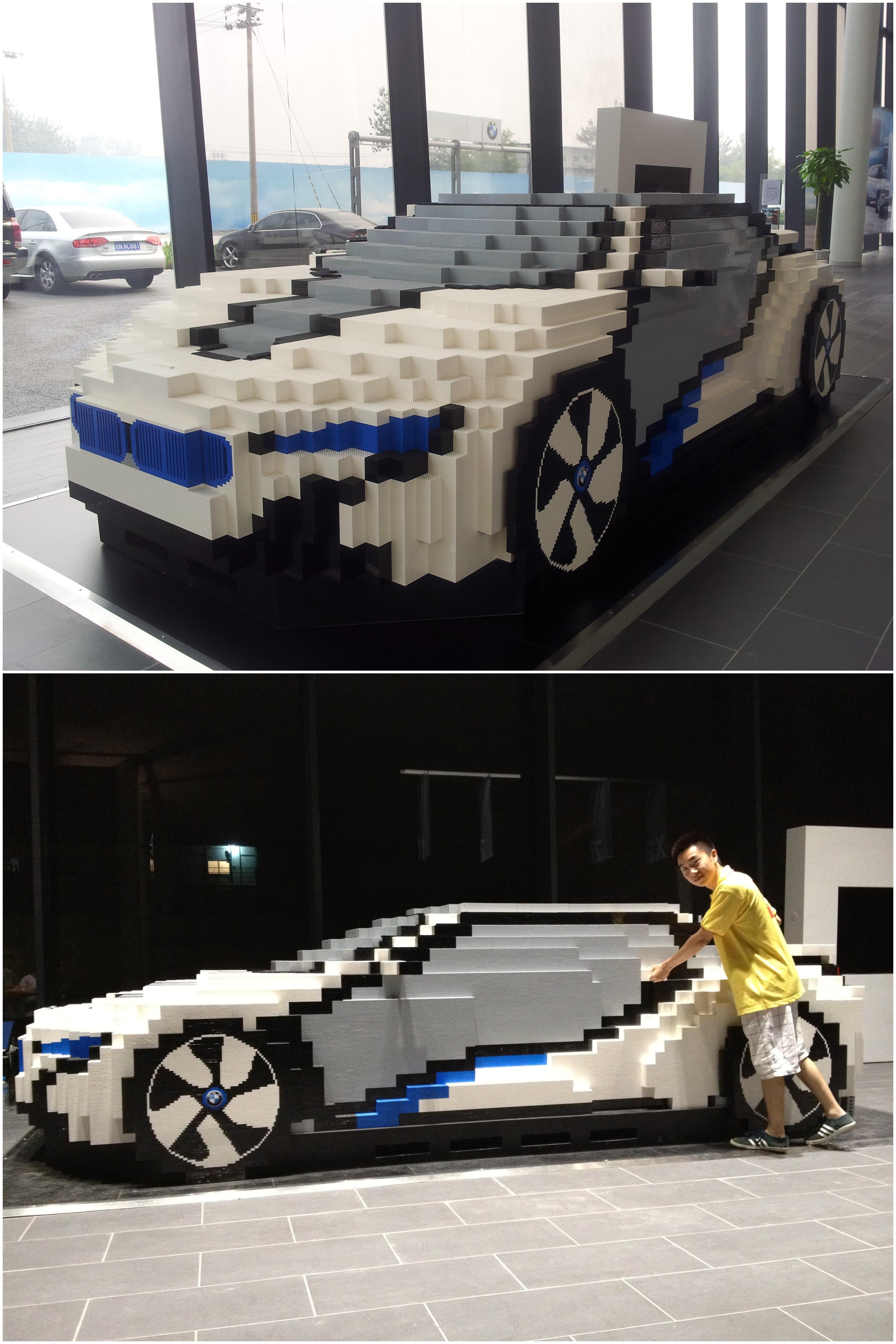 樂(lè)高中國(guó)積木拼砌師沈天成與他用近40萬(wàn)枚樂(lè)高顆粒拼砌的寶馬i8概念車