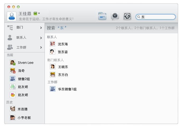 網易即時通在產品設計上秉承高效、易用、易管理的理念,同時需要兼顧到操作系統本身的特性,此次發布的網易即時通Mac版也同樣如此。在方便企業高效溝通方面,網易即時通Mac版進行了多項微創新,如 Mac版的一體化窗口設計,可以將組織架構等列表與聊天窗口緊密結合,并將“最近聯系人”分解為“當前”和“歷史”列在主窗口左側,讓用戶能夠更便捷地在窗口上直接定位與自己聯系過的同事,節省日常辦公溝通時查找聯系人的時間;網易即時通還支持聯系人的全局性搜索,一次搜索即可在多個列表中找到含有搜索關鍵字的所有聯系人;網易即時通管理后臺可管理的客戶端范圍不僅僅是較多用的Windows版本,還包含iPad、Mac平臺上的版本以及將要推出的手機版。