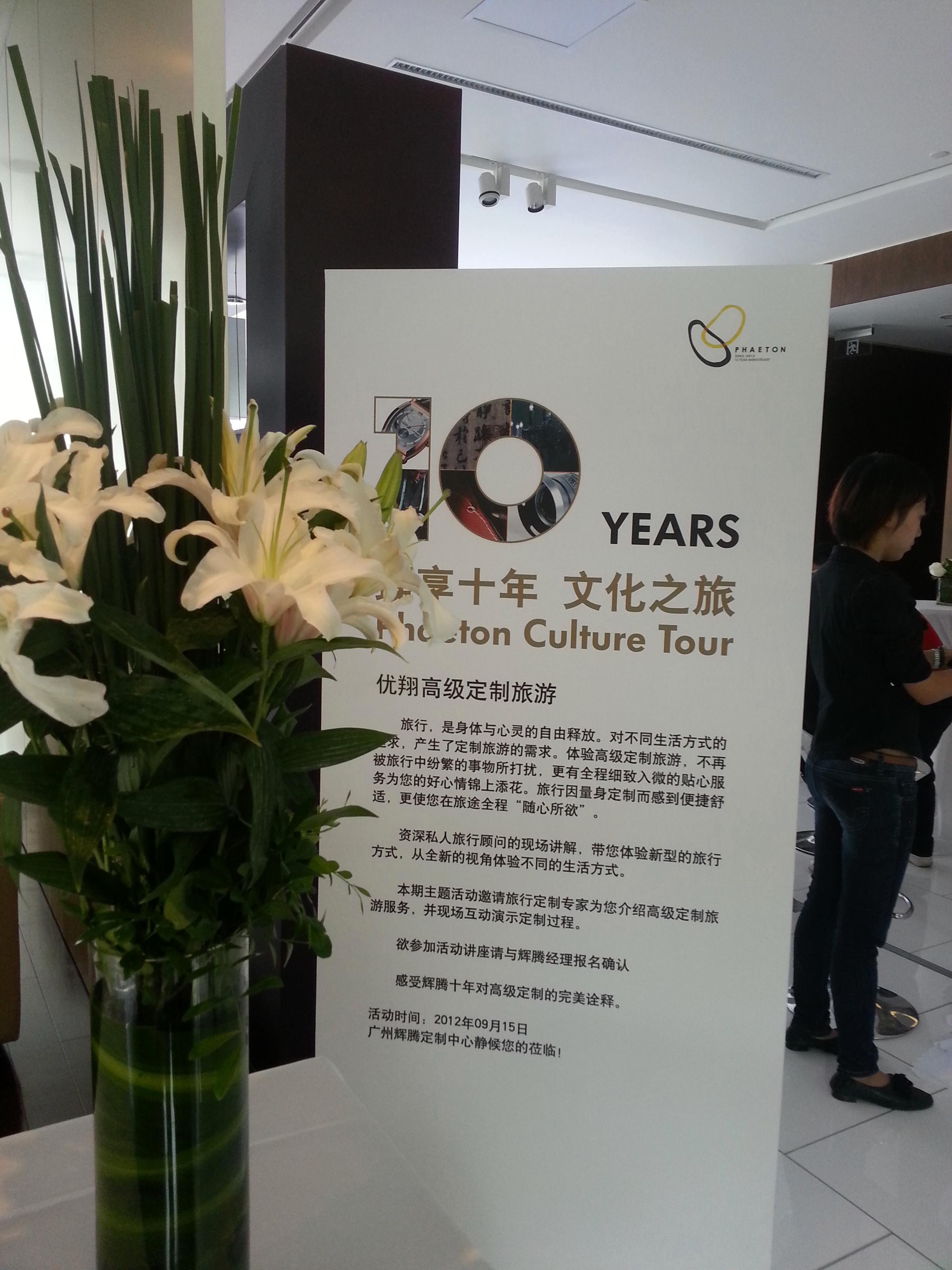 北京2012年9月24日電 /美通社/ -- 9月15日,北京名仕優(yōu)翔國(guó)際旅行社有限公司(http://www.lavion.com.cn/)攜手輝騰,在廣州天河輝騰定制中心拉開(kāi)“輝騰十周年文化之旅”活動(dòng)的序幕,共同為輝騰VIP客戶演繹了一場(chǎng)關(guān)于“高級(jí)私人定制”的精彩講演。