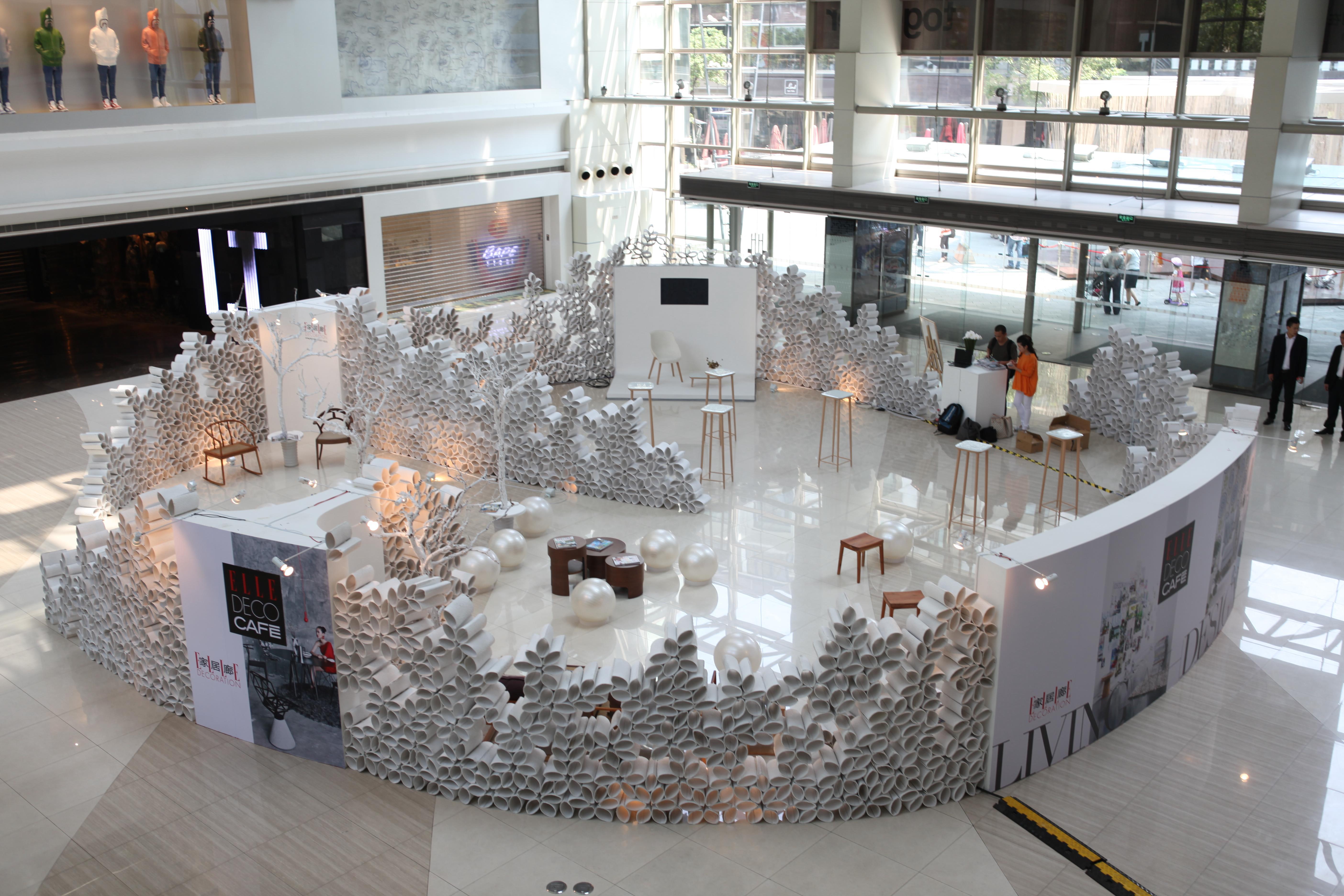 ELLE DECO Cafe設計咖啡館和Pop-up store設計游擊店將在上海新天地時尚和北京國貿同期開張(上海:9月23日-9月26日 新天地南里中庭,9月27日-10月7日新天地時尚B124-125;北京:9月26日-10月6日 國貿三期 B1),整個展覽期跨越整個十一黃金周,既是為了慶祝即將到來的100期大刊,也是將設計更好地帶入生活。店鋪外觀由EDIDA國際設計大獎(中國區)2011年度設計新秀張雷(“品物流形”組合)打造,主題為“看不見的竹”,把活動現場變成充滿夢境之美的裝置藝術展。整體設計既是裝置藝術展,又是當下最時髦的限時咖啡館和設計品商店。張雷是2012年米蘭設計展衛星展唯一大獎獲得者,在《ELLE DECORATION家居廊》多年的關注下成長,也是首位獲得此獎項的中國設計師。