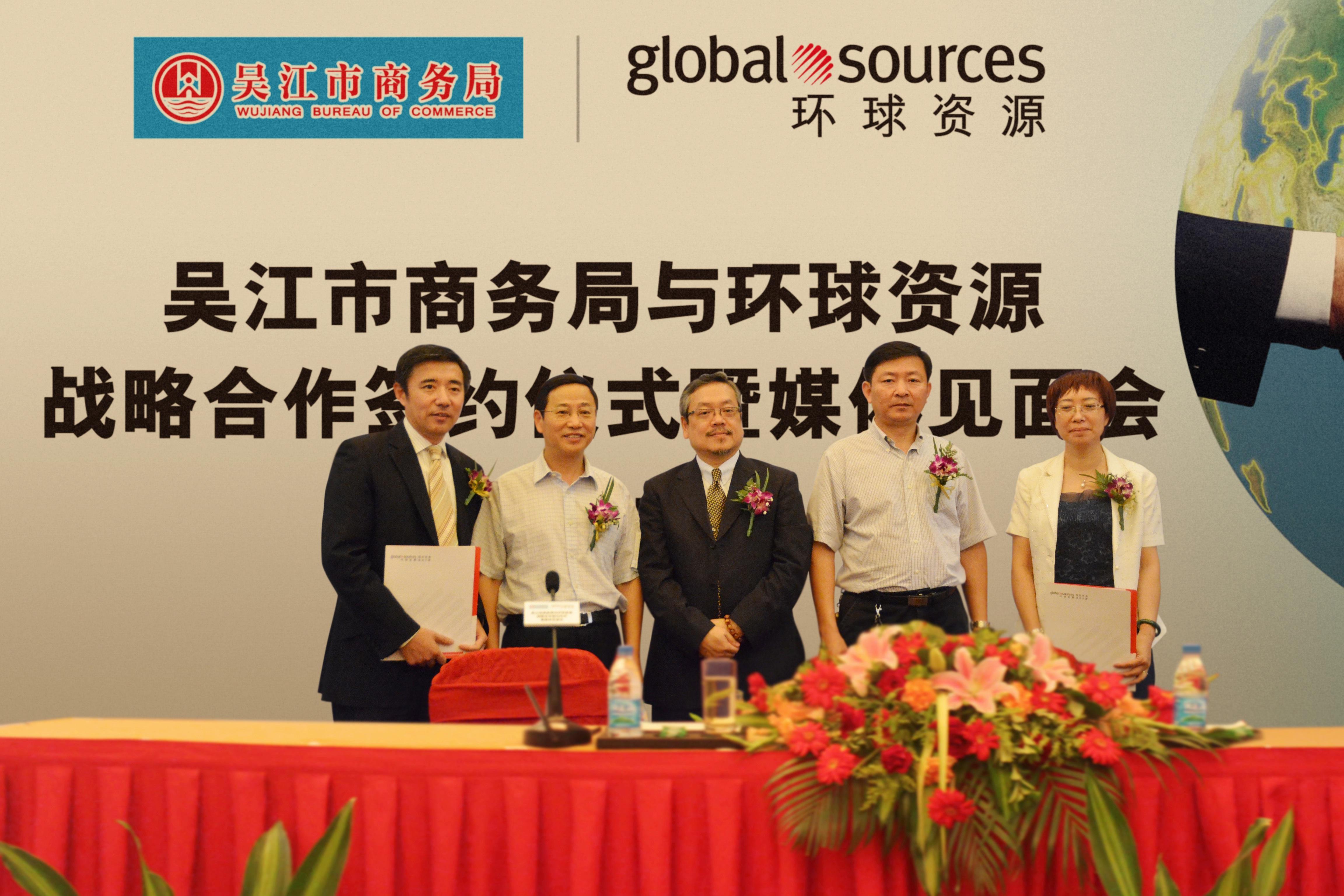 蘇州2012年9月27日電 /美通社/ -- 吳江市商務(wù)局與環(huán)球資源Global Sources (NASDAQ: GSOL) 今天簽署戰(zhàn)略合作協(xié)議。這是雙方首次正式開(kāi)展深入合作,旨在幫助吳江地區(qū)優(yōu)質(zhì)出口企業(yè)在全球經(jīng)濟(jì)前景尚不明朗的情況下,通過(guò)企業(yè)創(chuàng)新和轉(zhuǎn)型實(shí)現(xiàn)經(jīng)濟(jì)效益的逆勢(shì)增長(zhǎng)。