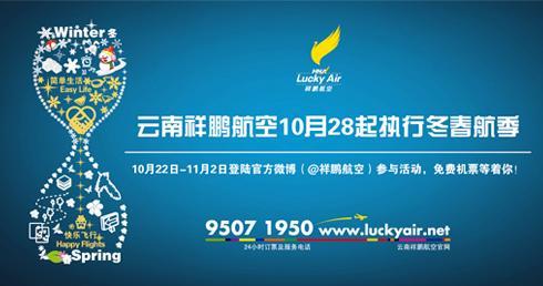 除此之外,云南祥鵬航空還為旅客們準備了超值免票大禮。10月22日-11月2日,云南祥鵬航空的新浪官方微博(@祥鵬航空 http://e.weibo.com/luckyairline )特別舉辦了關于2012/13冬春航班換季的有獎問答活動,廣大微博用戶們可于該時間段內按照要求參與活動并正確回答微博問題,就有機會帶走4張免費機票大獎,更有眾多精美小禮品贈送。