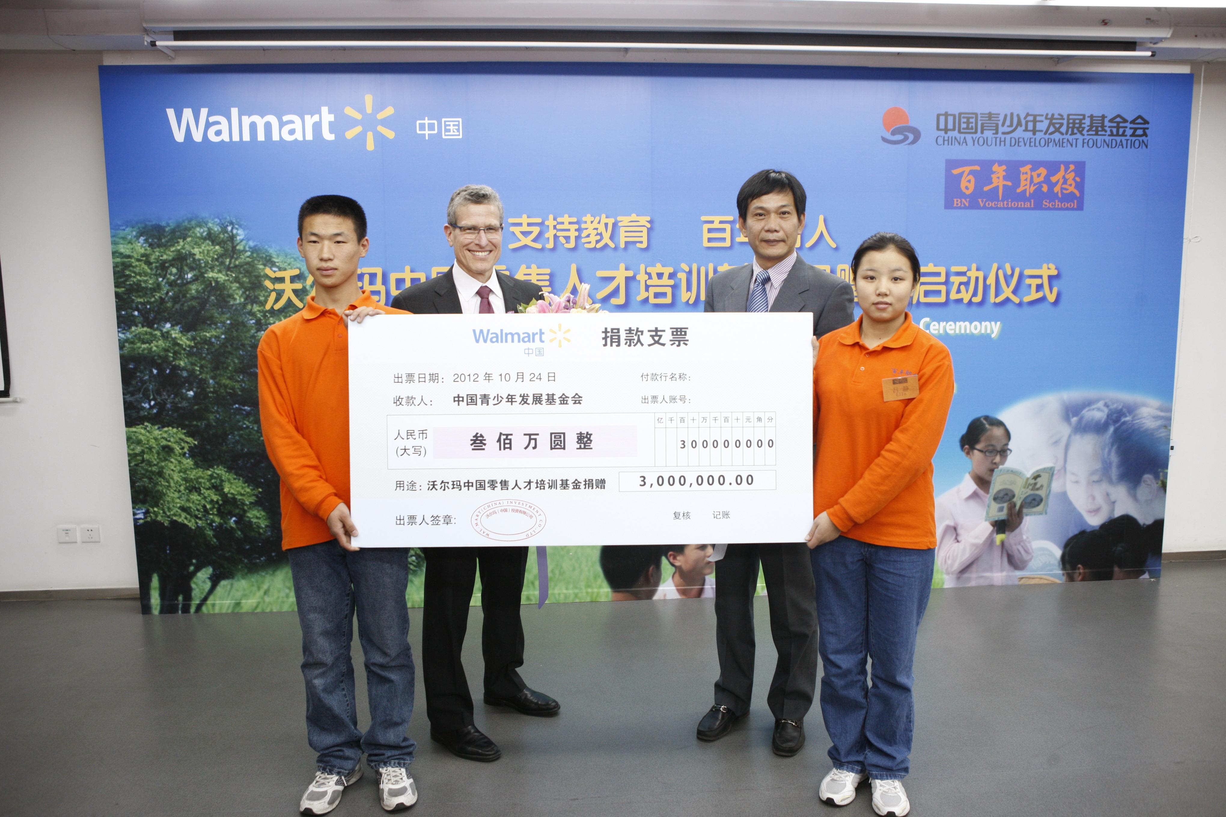 北京2012年10月24日電 /美通社/ -- 今天,沃爾瑪中國(guó)與中國(guó)青少年發(fā)展基金會(huì)在北京百年職校舉行“沃爾瑪零售人才培訓(xùn)基金”捐贈(zèng)儀式,并正式啟動(dòng)該基金。沃爾瑪將向中國(guó)青少年發(fā)展基金會(huì)捐贈(zèng)300萬(wàn)元,用于建立“沃爾瑪中國(guó)零售人才培訓(xùn)基金”。該公益培訓(xùn)基金將用于為百年職校在全國(guó)各地的校區(qū)培養(yǎng)零售行業(yè)專(zhuān)業(yè)人才,推廣經(jīng)過(guò)沃爾瑪和國(guó)際青年基金會(huì)(International Youth Foundation, or IYF)聯(lián)合開(kāi)發(fā)的零售人才培訓(xùn)教材的中文版,并向百年職校零售培訓(xùn)的優(yōu)秀學(xué)生授予沃爾瑪零售人才獎(jiǎng)學(xué)金。