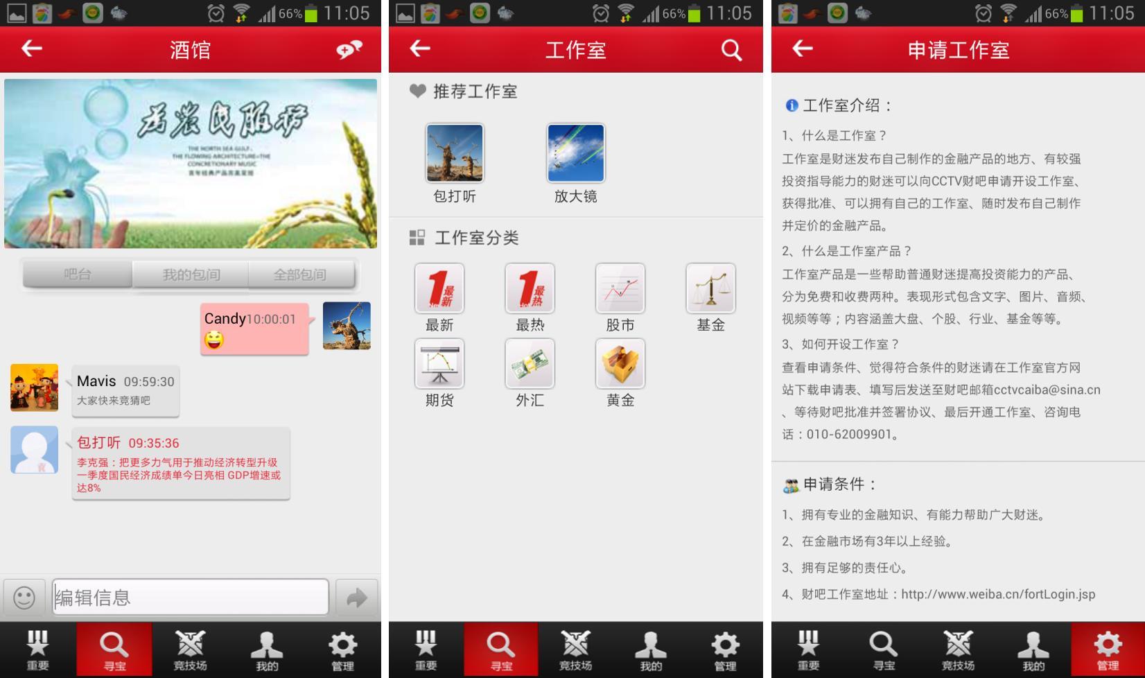 此次新增的“酒館包間”功能和“吧臺“功能,使廣大投資愛好者可通過“財吧”隨時和專家互動交流,更使“財迷”們能夠按興趣選擇互動空間,與吧友交流和分享投資理財經驗和信息,相信您會得到更好的體驗,更多的的收獲。