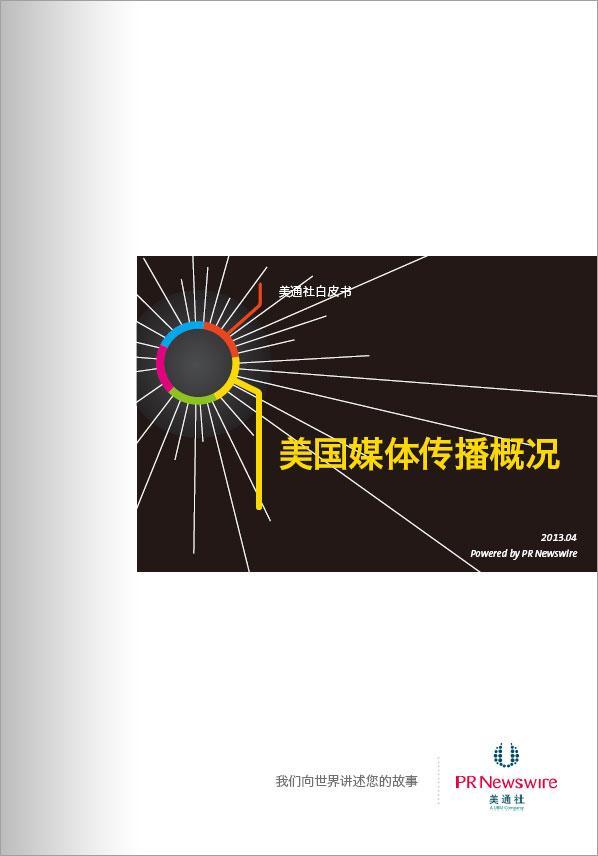 北京2013年4月26日電 /美通社/ -- 美通社今日推出《美國媒體傳播概況》白皮書,旨在幫助在美國做公關傳播的中國企業(yè)和機構了解美國媒體環(huán)境。白皮書從傳統(tǒng)、在線和新媒體等不同媒體形態(tài)入手,對美國媒體傳播情況做了基本描述,包含綜述、研究數據、趨勢分析、重點媒體排名等內容。白皮書還針對如何在美國進行企業(yè)新聞傳播提供了建議。點擊此處下載白皮書。