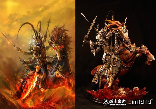 神呂布新版原畫邀請國際知名游戲原畫美術師“干橘子”親繪,六臂神呂布手持三大法器,身騎戰馬赤兔,浴血廝殺于煉獄戰場之上,如此精美震撼的畫面經由TOPOP合作的國際一流原型師團隊“末那”將其立體呈現。從原畫繪制、造型設計,直到選材上色,歷經一年多的反復構思與精雕雕琢,在高度還原角色形象的同時,將呂布獨特的內在性格和精神詮釋到極致,至此,猶如戰神附體般的神呂布手辦誕生了。浴血的戰神呂布與幽冥赤兔的完美組合,注定成就史上武力較強悍、造型最拉風的武將。