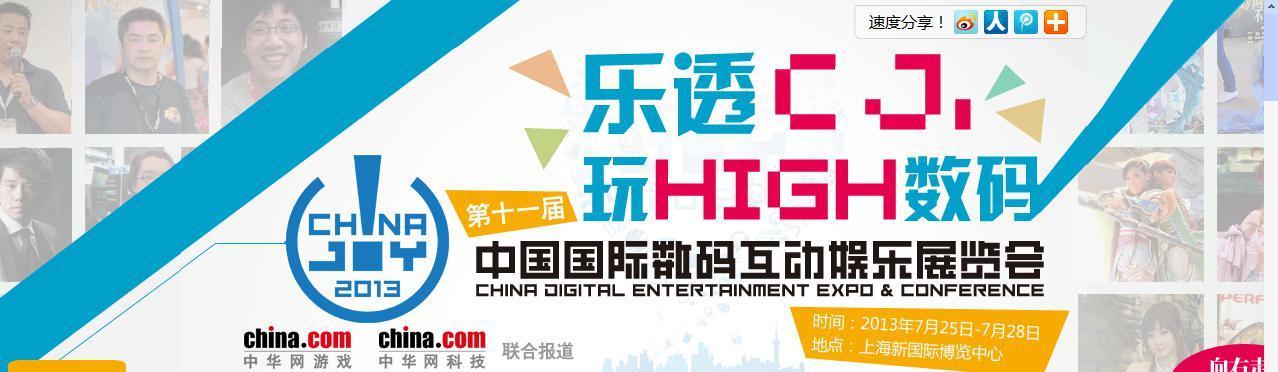 北京2013年7月25日電 /美通社/ -- 第十一屆中國國際數(shù)碼互動娛樂展覽會(以下簡稱ChinaJoy展覽會)開幕式暨高峰論壇7月24日在滬舉行,中華網(wǎng)手機WAP站(3g.china.com)與中華網(wǎng)游戲頻道、中華網(wǎng)數(shù)碼頻道將強強聯(lián)合進行獨家報道,讓許多玩家翹首期待的線上互動活動也已經(jīng)開始。