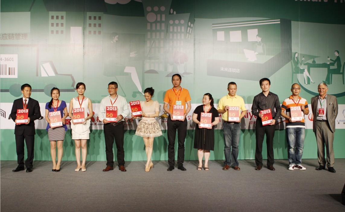 創業邦CEO兼出版人南立新女士為入選 “創業邦2013中國高成長連鎖企業50強(Franchise50)的優秀企業頒發了榮譽證書。此外,本次大會還評選出了兩個個人單項獎,米其林(中國)馳加負責人廖初航、克麗緹娜執行長余敬倫分別榮獲了連鎖經理人、管理創新獎。
