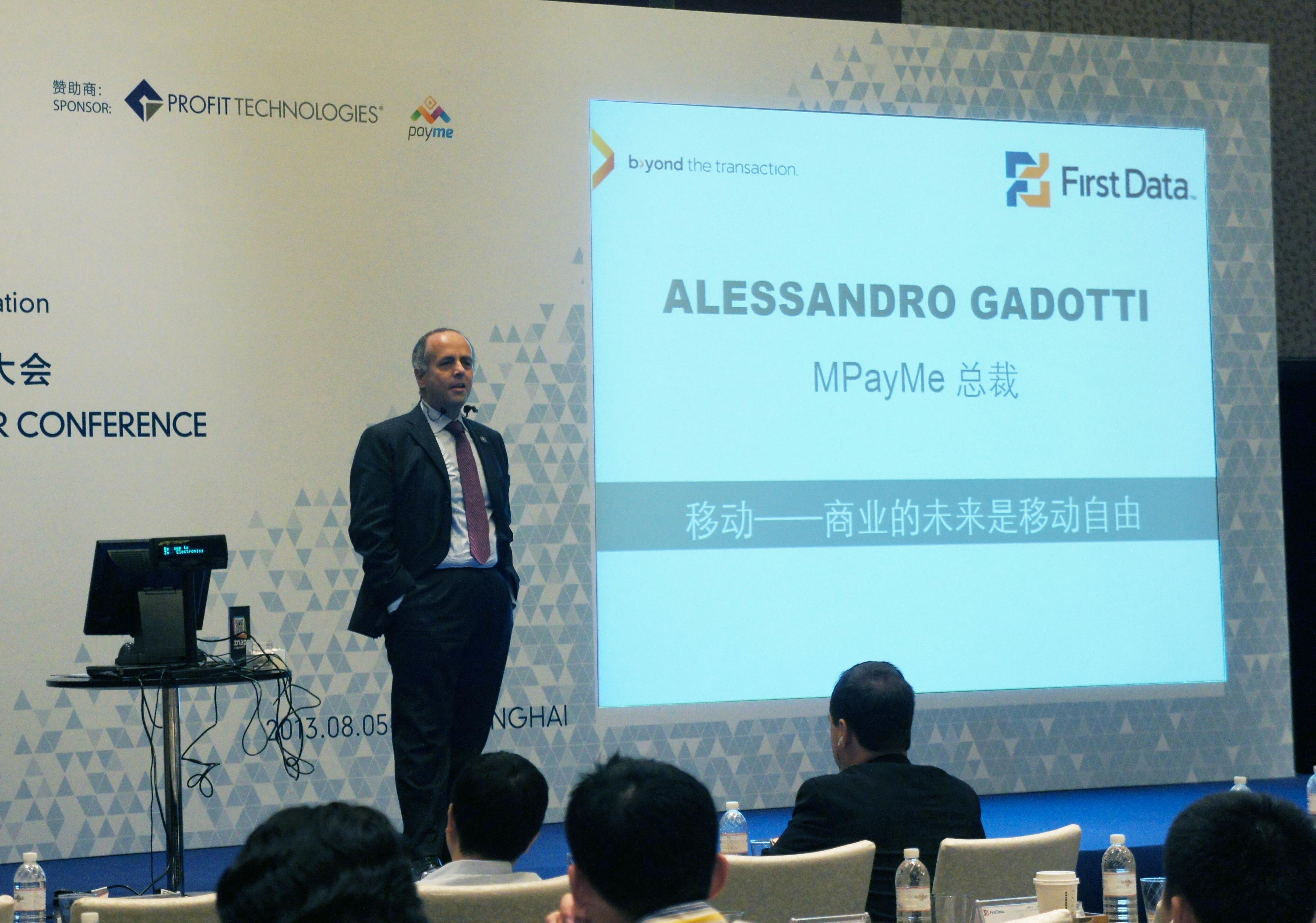 國際商用科技企業(yè)MPayMe 于今年5月宣布與全球領(lǐng)先的美國電子商務(wù)和付款處理商First Data 結(jié)成策略聯(lián)盟。 MPayMe集團行政總裁Alessandro Gadotti 親抵達上海出席“第一資訊(中國)支付峰會暨用戶大會”。